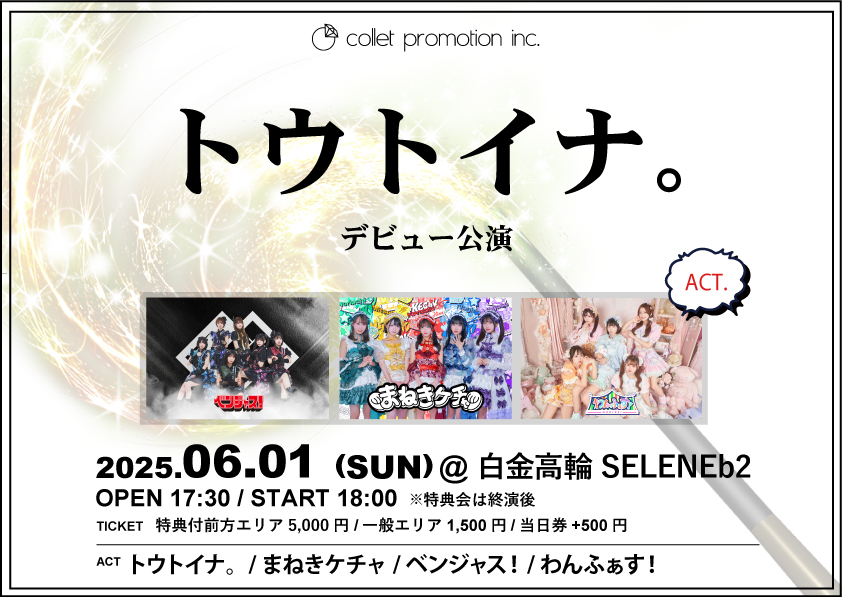 6月1日(日)「トウトイナ。デビュー公演」開催決定